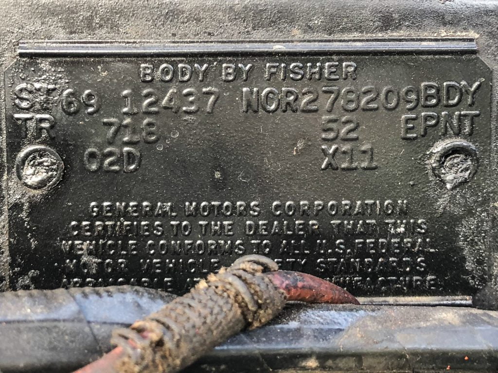 Die Cowl Tag des Camaro gibt folgende Informationen preis: